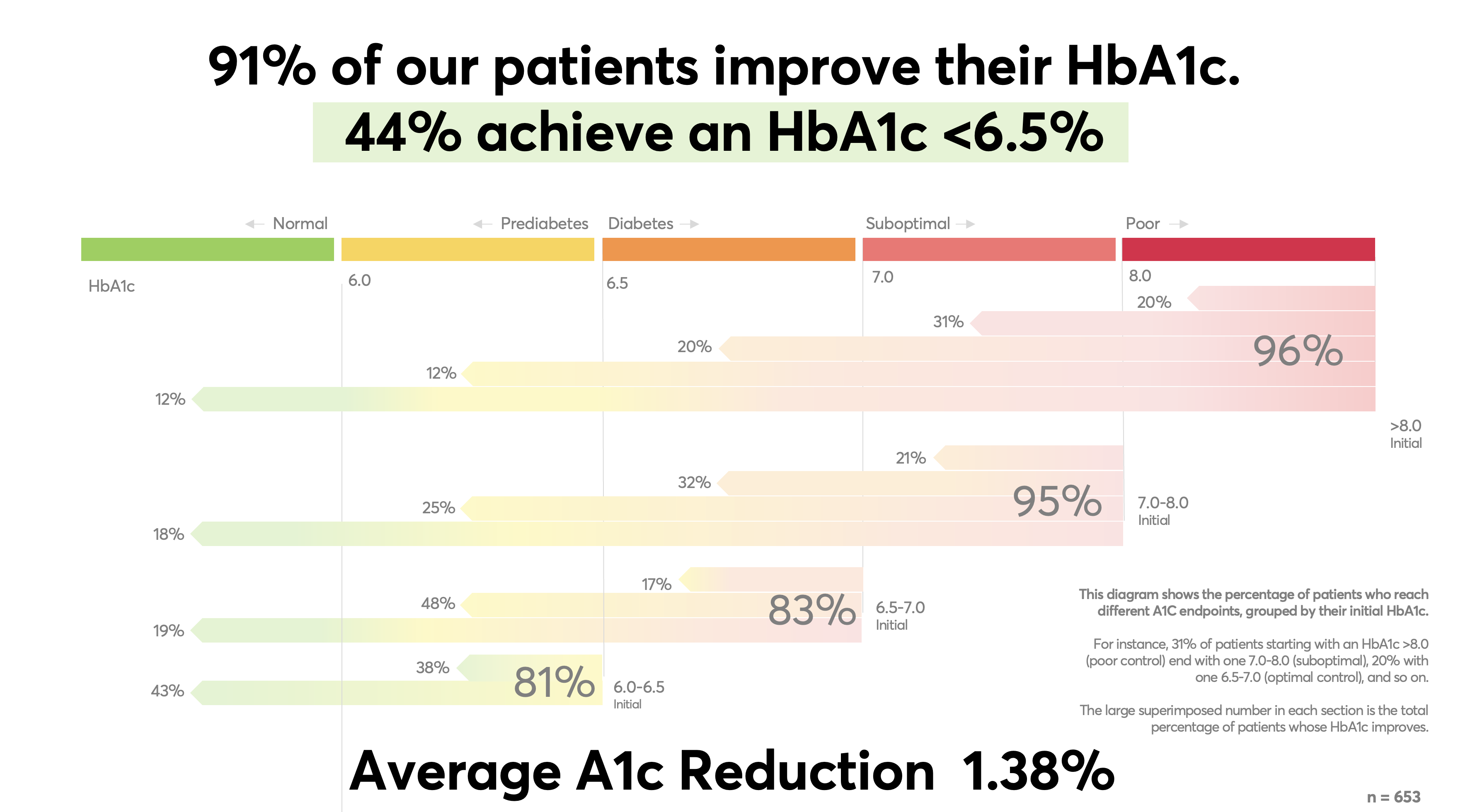 Our program for Type 2 diabetes focuses on sustainable lifestyle changes that lead to significant weight loss and in some cases, diabetic remission.