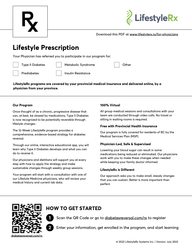 LifestyleRx offers an accessible lifestyle prescription for your patients that teaches them strategies for nutrition, exercise, sleep, and stress management to help them reverse type 2 diabetes.